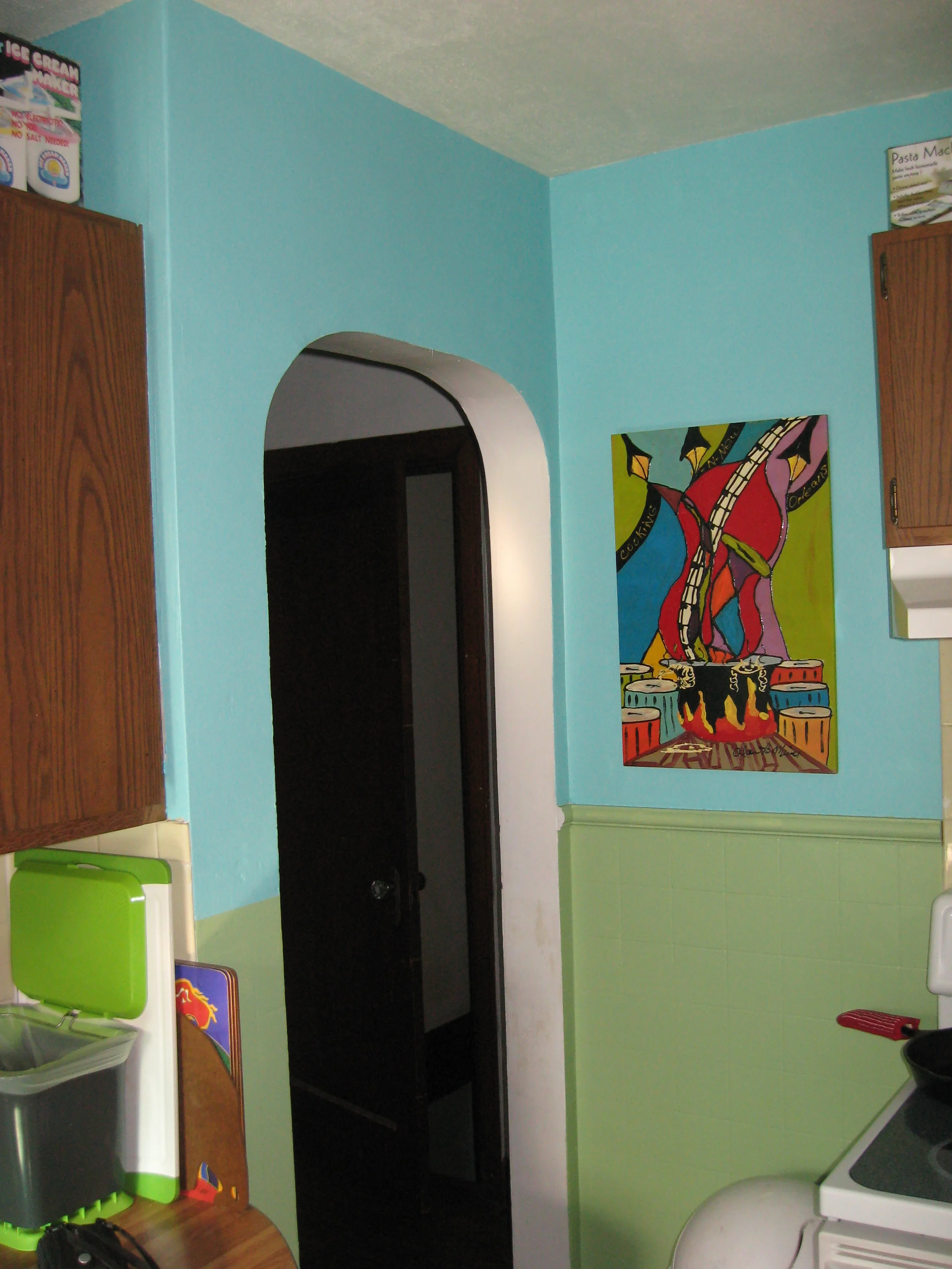 In the course of the day we painted the kitchen and dining room AND we installed two new bedroom windows.